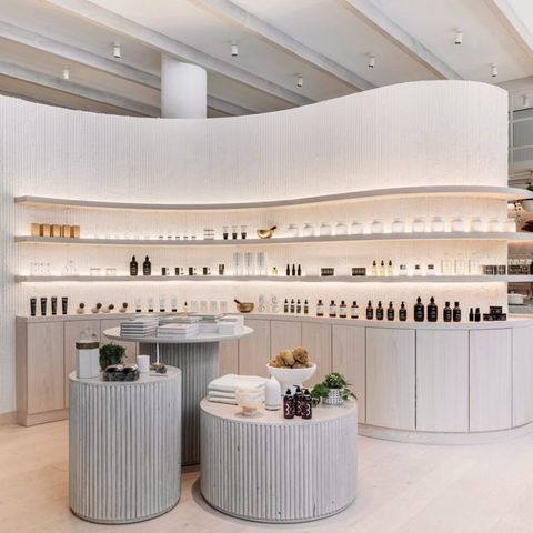 Op Maat Gelakt Hout En Glas Vitrinekasten Voor Parfum & Huidverzorging Vloerstaande Winkel & Winkelcentrum Interieurontwerp